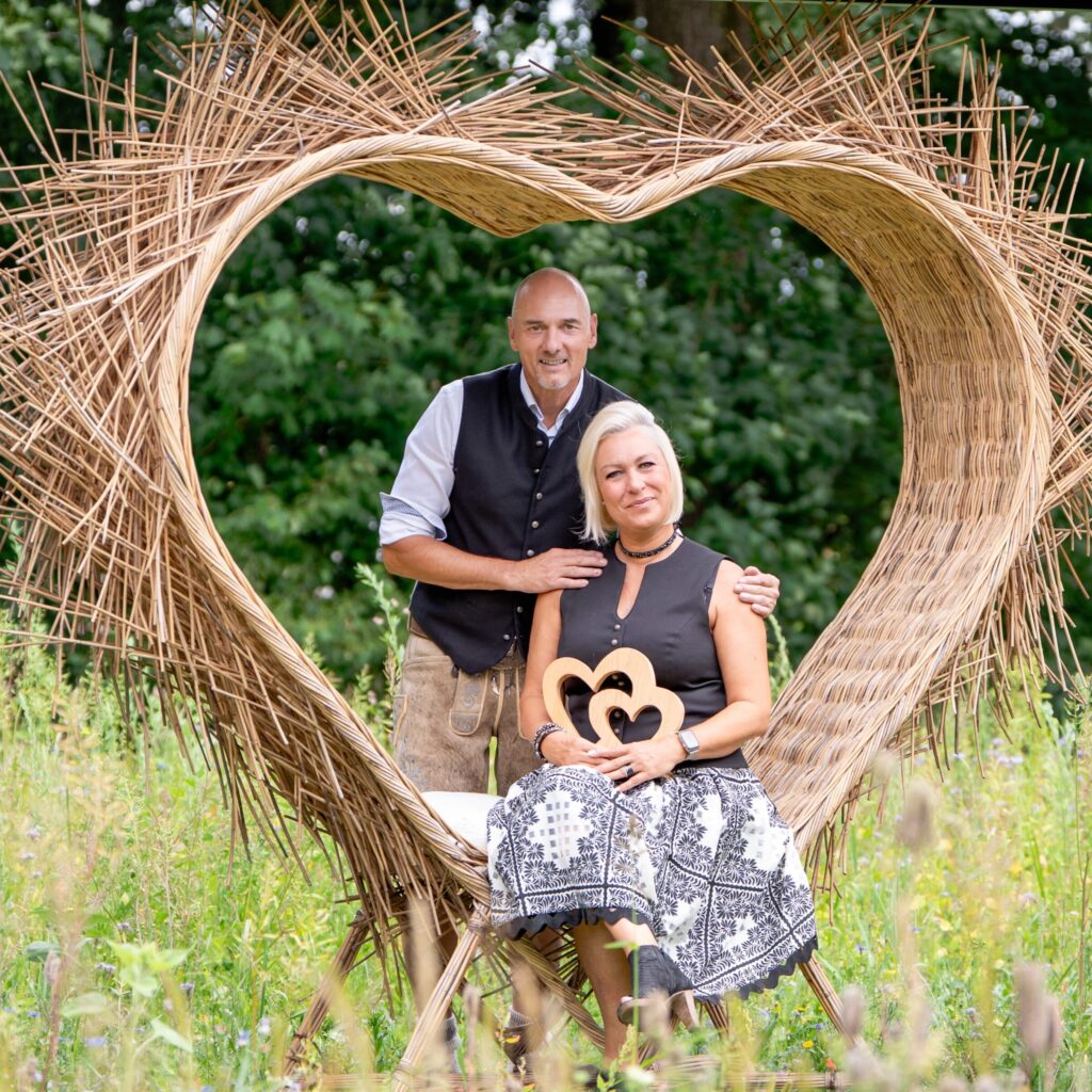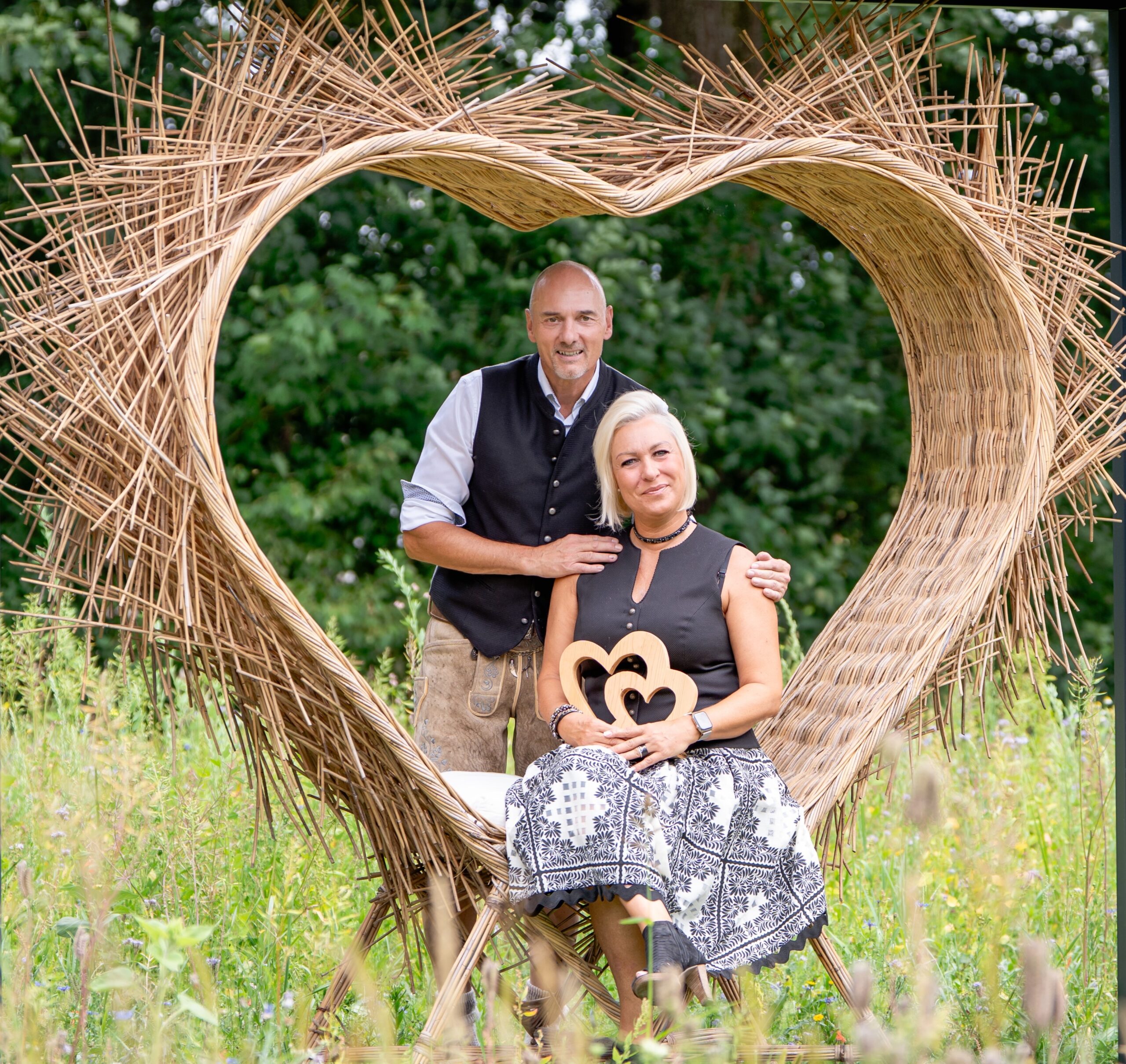 Geführt wird das Haus, in dem sich die Duftnote “Kurschatten” (morgens Fango, abends Tango) in jeder Ritze für die Ewigkeit festgesetzt hat, von Carola (links, übrigens ein Jugendbild oder die ganz teuere Bezahlversion von Photoshop), die niederen Arbeiten (Rezeption besetzen, Gartenpflege, Frühstücksgeschirr abräumen…) erledigt der Gatte (links von Caro, aber nur für ihre Freunde), dessen Namen keiner kennt und den wir hilfsweise fortan Hans-Jochen nennen wollen. In kurz, “die (odrahte) Matz” und “der Lapp”.