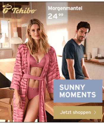 Aus der bunten Welt der Werbung Eine, wenn auch möglicherweise nicht repräsentative Umfrage im Freundinnenkreis hat ergeben, dass wir alle unsere Bademäntel genau so tragen, wie die Werbemenschen von Tchibo sich das vorstellen. Weil: Wer hat schon gerne einen warmen Bauch?