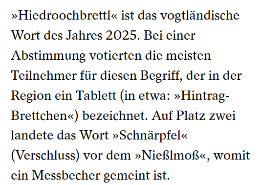 Ich weiß ganz genau Nullkommanix über das Vogtland, aber die Leute dort sind mir dennoch sehr sympathisch. Und wenn ihr erst seht, was für schöne Wörter dieser Dialekt hat, dann sind sie es euch bestimmt auch.