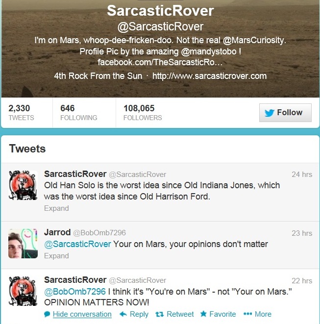 Ich bin nicht die einzige, die diese Schluderei aufregt. Eben gefunden: Der Sarcastic Rover ist neben Mars-Forscher auch ein Sprachwächterkollege.