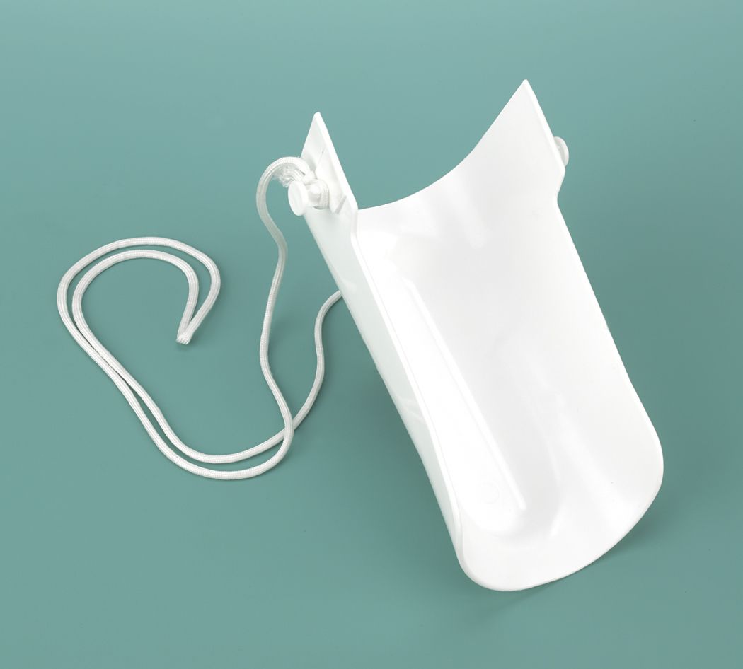 Klamotten anziehen: Unterhose mit dem Grabber auf dem Boden fixieren, Fuß reinheben, mit dem Grabber auf Kniehöhe hochziehen, dann den anderen Fuß (der, mit dem Bein, das ich anwinkeln kann) in die richtige Öffnung bugsieren, hochziehen. Schweißausbruch. Noch einmal wiederholen mit irgendwelchen Jogginghosen. Wieder Schweißausbruch. Und keine 10 Minuten später bin ich “untenrum” angezogen. Der Rest ist ein Kinderspiel, wobei zur Zeit der Inhalt meiner Schränke auf den Kommoden ausliegt, weil bücken und Schubladen aufziehen erst mal noch nicht zu meinen besten Fertigkeiten zählt. Zu meinem Riesenglück haben wir gerade ein Hitzewellchen und das spart mir das äußerst mühselige Anziehen von Strümpfen. Wer das noch nie mit einem Sock-Aid (links) versucht hat, weiß nicht, was ihm entgangen ist (im wesentlichen Verzweiflung, Schweißausbrüche und phantasievolle Flüche.)