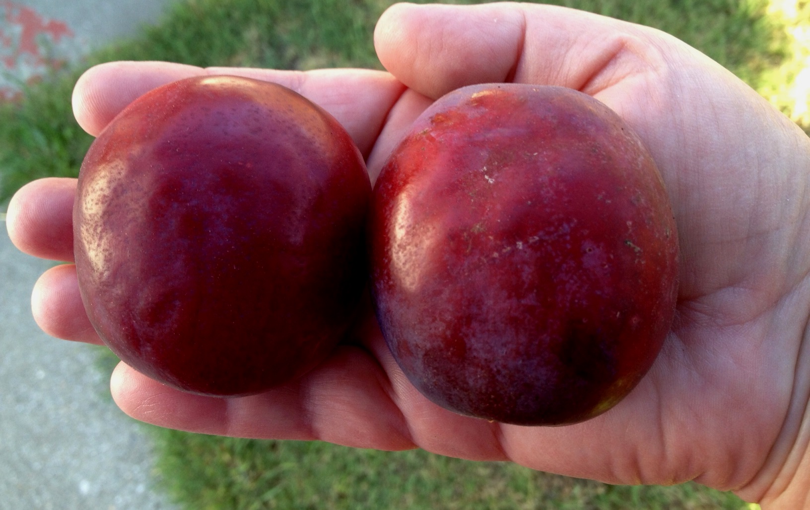 Im Jahr des Panikobsts: Die gelben und die roten Pflaumen sind noch nicht mal vollständig abgeerntet, der Apfelbaum hängt immer noch voll und blĂĽht wieder – und jetzt sind die blauen schon reif. Und riesig.