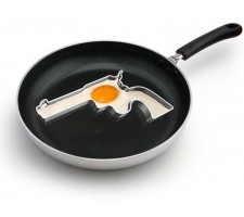 Man sollte auf keinen Fall versäumen, im Gun Giftshop vorbeizuschauen. Ich habe keine Ahnung, wozu man Eiswürfel in Pistolenform braucht. Die passen doch nicht mal mit Gewalt in die Shot-Gläser (hihi)? Andererseits, den Kauf dieses Eierförmchens würde ich möglicherweise erwägen. Ein Spiegelei wie das links zum Frühstück hält bestimmt jeden davon ab, einen beim Morgenmuffeln zu belästigen.
