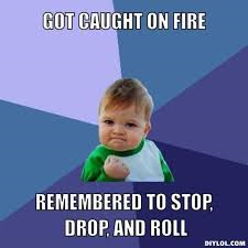 Nachtrag (aus Sissys Backup-Folien): Was tun, wenn’s brennt bzw. ich in Flammen stehe? “Stop – Drop – And Roll” lernen hier schon die Kleinsten. Als hätte ich nicht schon genug Kopfschmerzen, rollert bei mir sofort die Blechbüchsenarmee aus der Augsburger Puppenkiste durchs Hirn. Schepper, schepper, roll. Jawoll, jawoll!