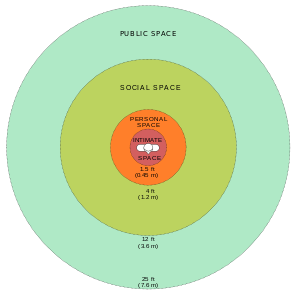 * Amerikaner sind sehr bedacht auf ihren “personal space”, also die virtuelle “No-go-Zone”, die sie um sich errichten; gemäß (amerikanischer) Anthropologie kann dieser Raum in Zoll (Inch)** bemessen werden (s. http://bit.ly/1zrKKdE).