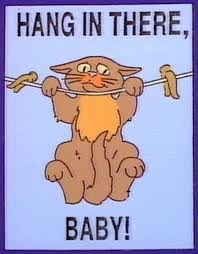 Die korrekte Antwort auf die Frage “Und, wie geht’s dir?” ist in solchen Zeiten “I’m hanging in there” und der Ausdruck ist, wenn man Wikipedia glauben darf (http://bit.ly/18YKflX), von diesem “Motivational” Poster abzuleiten.