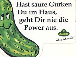 In meinen Haushalt hat das Gürkchen als Gastgeschenk Einzug gehalten, geschnürt an eine Tüte selbstgebackener Platzerl. Ach, Matthias, du hattest mich schon mit den Keksen und natürlich dopppelt mit dem Argument, daß es ein besseres Geschenk für eine Nichtweihnachterin gar nicht geben kann. Stimmt. Vielen Dank! Sauerpower rulez!