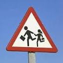 Abschließend noch dieses häufig vor Schulen und anderen Kinderaufbewahrungsanstalten angebrachte Schild, das offensichtlich darauf hinweist, dass die Kleinen trotz ihrer kurzen Beinchen auch mit Marschgepäck schon sehr schön schnell rennen und daher die Bremsbeläge geschont werden können.