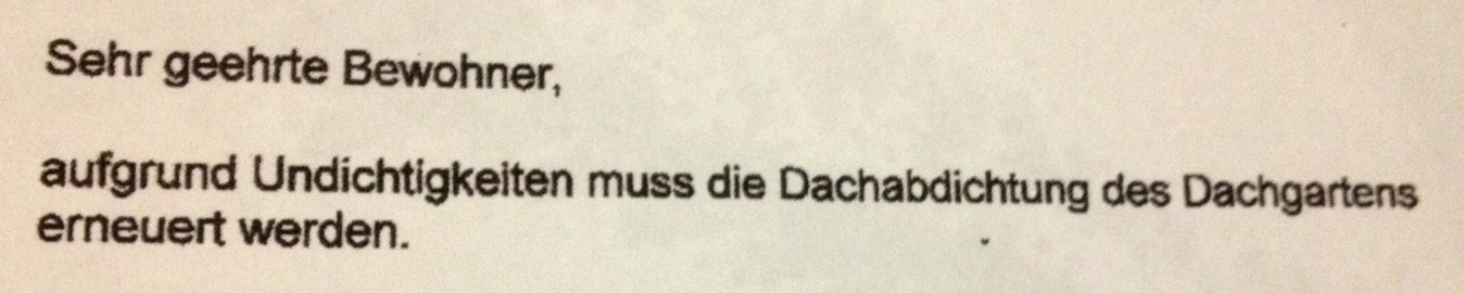Nix Inkontinenz! Wenn meine Hausverwaltung die Insassen der Anstalt von porös gewordenem Material informiert, dann schon auf gut Deutsch. Oder zumindest so Àhnlich.
