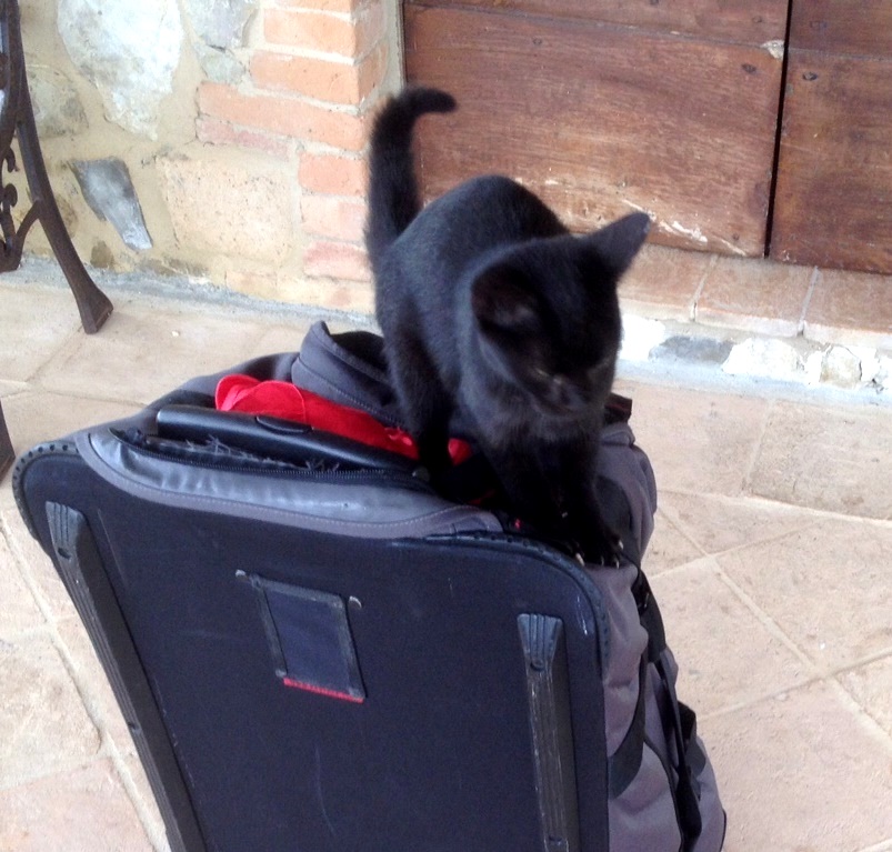 Der erste Gedanke, der mir durch den Kopf schießt, ist, dass es Amico Negro (für seine Freunde inzwischen “Zwuppie”), doch noch irgendwie geschafft haben muß, sich ins Gepäck zu schmuggeln. Anstalten dazu hatte er heute morgen wirklich genug gemacht und unfaßbar unerträglich sehr schlimmen Trennungsschmerz vorgetäuscht. (Ganz große Oper für so einen Zwerg.)