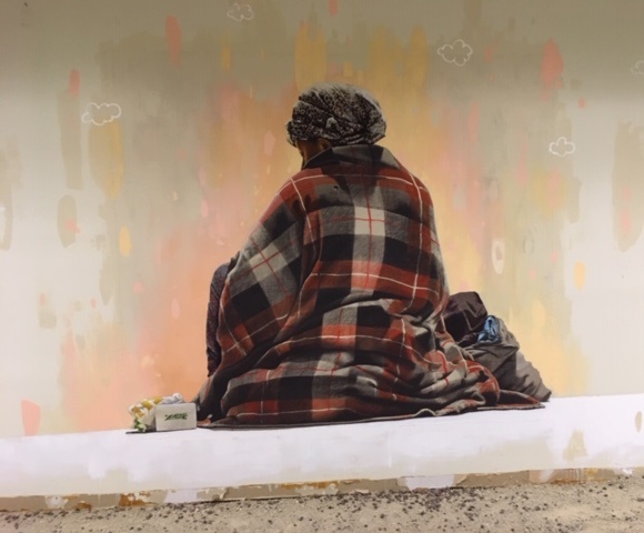 Hier ein Wandbild, bei dem man doch nur “Flüchtling” denken kann…