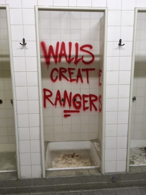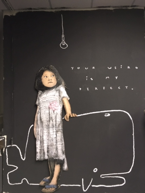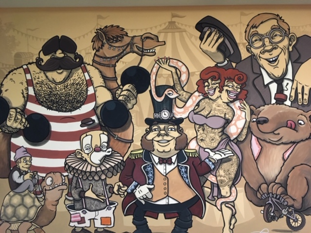 Einer hat in den Gängen seine persönlichen Freak-Show-Varianten aufgemalt: