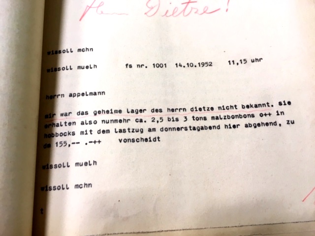 Im 6. Stock und viele Räume weiter, nach Vorstandsetage, Küche und Kantine habe ich in den Geheimakten endlich die Aufklärung des großen Nachkriegsmalzbonbonskandals aus dem Jahre 1952 entdeckt. Echt, dort lagen Akten zum Rumblättern rum und neugierig, wie ich bin, habe ich eine x-beliebige in die Hand genommen und… voilà. Kamellogate, endlich enthüllt.