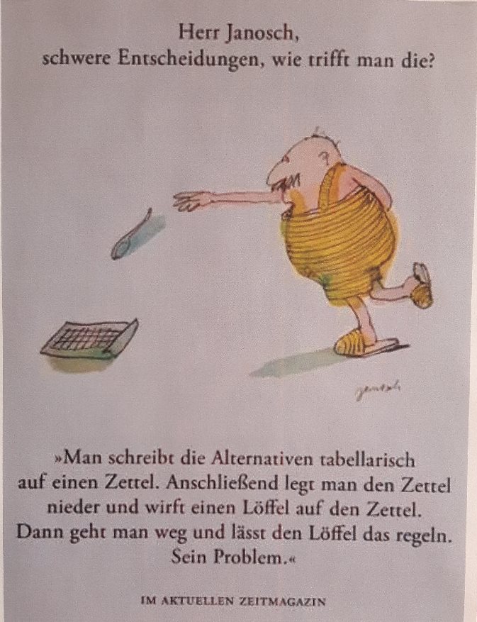 Entscheidungshilfe April 5, 2019 by flock with no comment Danke an Frau S. aus D. für diesen Gastbeitrag. Previous Post April, April Next Post Gelesen: Wilhelm Genazino – “Ein Regenschirm für diesen Tag”