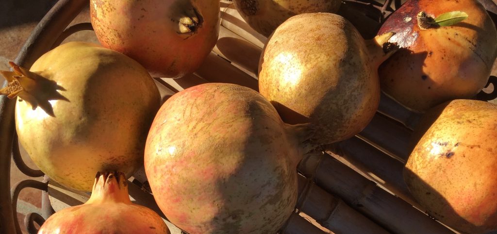 Karin hat sich inzwischen einen großen Gemüsegarten angelegt und immer, wenn wir in der letzten Woche gekocht haben, gabs eigenen Mangold und Mangold, Rukola, Basilikum, auch Mangold. Selbst die Obstbäume, die sie in ihrem ersten Jahr hier gepflanzt hat, tragen schon Früchte. Zwar im einstelligen Bereich, aber immerhin. Noch ein paar Jahre, und dann wird sie zur Erntezeit wie alle in den Tauschhandel mit der Nachbarschaft eintreten, weil einfach immer alles gleichzeitig reif wird. Auch in Andalusien. Dadurch sind wir dieser Tage zu einem Haufen Granatäpfeln gekommen. (Habe noch keinen Weg gefunden, sie wohlschmeckend mit Mangold zu kombinieren. Arbeite aber dran.)