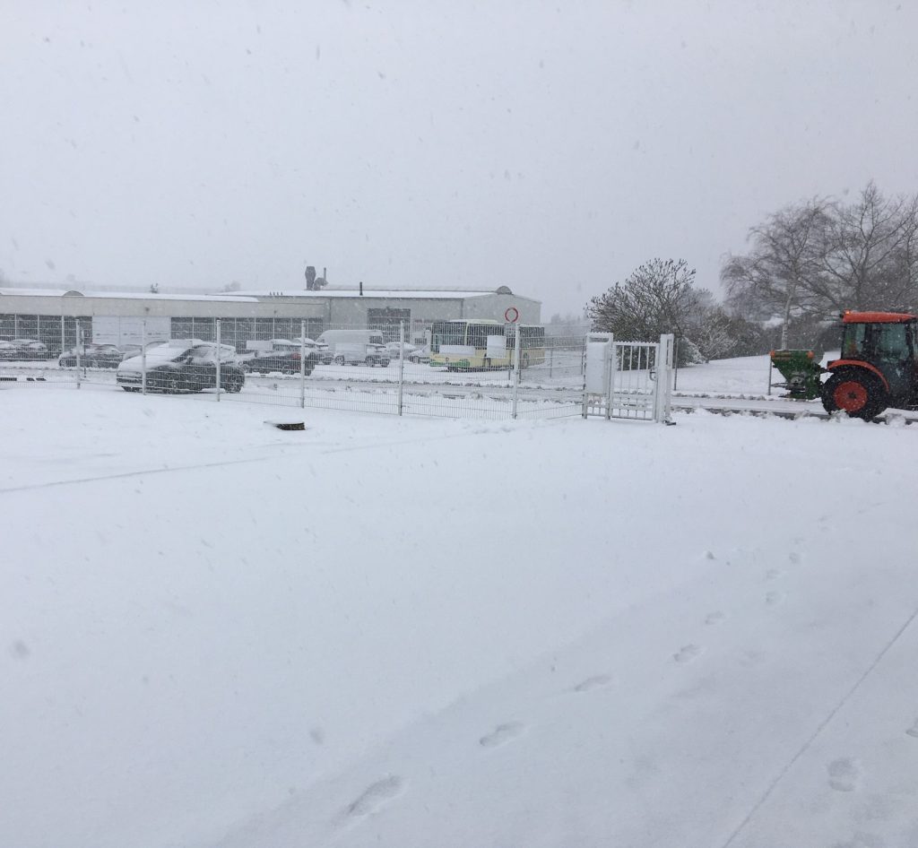 Der ganze Hunsrück ist seit Stunden ein einziges Verkehrschaos. Laster hängen an Hängen, viele stehen quergedreht auf den Landstraßen und dahinter stecken viele Kolleg*innen in ihren PKWs in langen Staus. Autobahnauffahrten und ganze -abschnitte sind gesperrt, die Feuerwehr im Dauereinsatz. Und es hört nicht auf zu schneien. Allen eine gute und heile Heimfahrt!