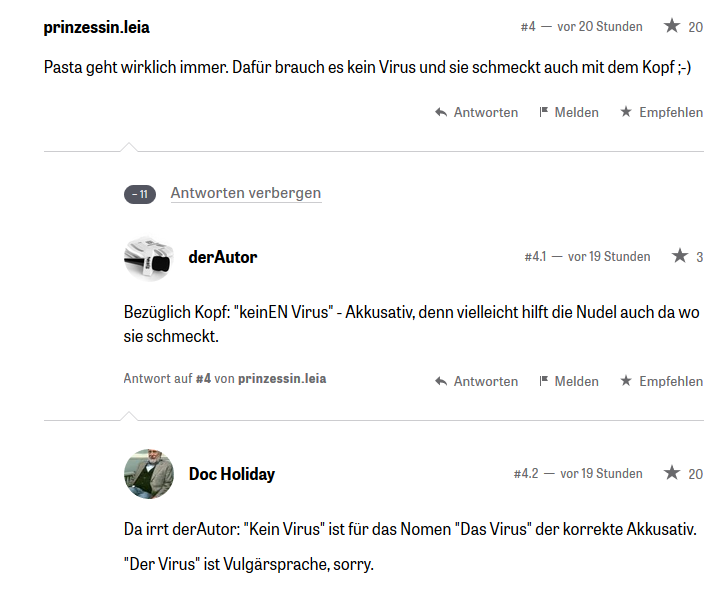Jede/r hat in den letzten Tagen in Supermärkten leere Regale gesehen. Dieser Umstand ist natürlich auch Gesprächsthema in der Teeküche der Vermietermitarbeiterinnen, deren wöchentliche gemeinsame Mittagspauseneinfahrtstour zu Aldi gefährdet scheint. Weil man ja gar nicht weiß, ob es da inzwischen wieder Nudeln oder Mehl gibt, wenn man beispielsweise Nudeln oder Mehl brauchen täte (selbstverständlich in haushaltsüblichen Mengen, weil man selbst ja nicht zu Panikeinkäufen neigt).