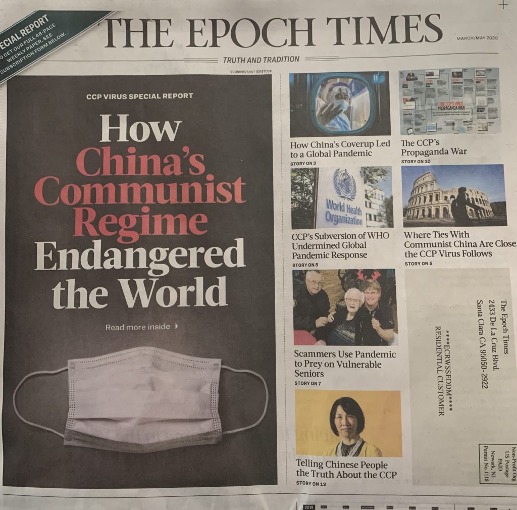 Er könne sich, schreibt der Auslandskorrespondent, des Eindrucks nicht erwehren, dass die Redaktion beim “Wahrheit und Tradition” verpflichteten Umsonstblättchen “The Epoch Times” von einem Parteivirus befallen sei.