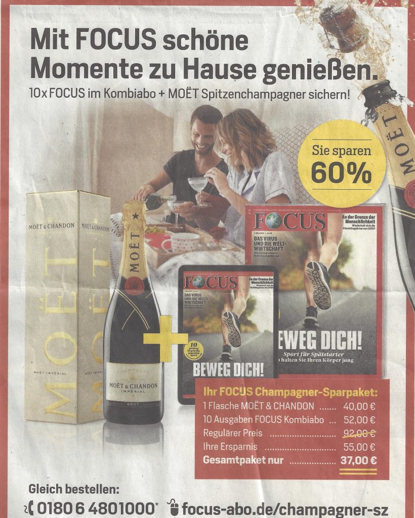 Ganz verstanden habe ich sie nicht, die Herrschaften vom Fokus: soll ich nun champagnerschlürfend auf der Couch herumlümmeln oder Leibesertüchtigung betreiben?