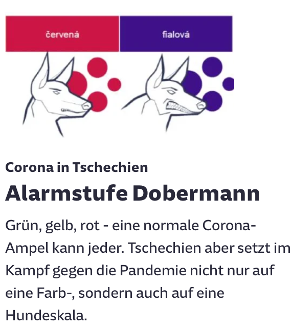 # In Deutschland kennt man inzwischen die Alarmstufe “Dunkelrot” für ganz besonders alarmierend. Tschechien liegt bei Gefahr um eine Hundenasenlänge vorne.