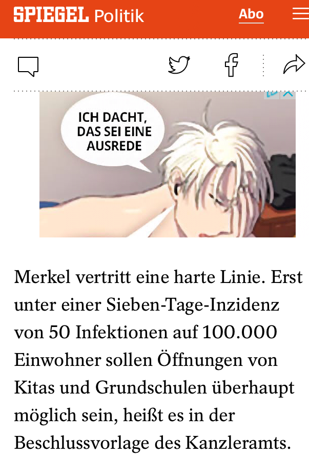 Context matters January 25, 2021 by flock with no comment Mann, ey, wie oft soll ich es noch wiederholen: bitte prüfen, ob Werbung und Content zusammenpassen: Previous Post Noch in der Mediathek: Tatort Stuttgart – Das ist unser Haus Next Post Beleidigt