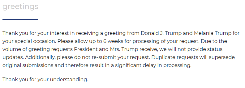 Wer sich den About-Teil antun mag, bekommt die Geschichte vom Großen Donald serviert, der unermüdlich weiter daran arbeitet, “America first” unter den Nationen dieser Welt zu machen, wer bis zum Contact-Reiter klickt, kann dort den Ex-Füherer der freien Welt mit oder ohne Gattin für Auftritte buchen. Geburtstag, Ruhestand, Hochzeit, Zapfenstreich, Pfadfinderpreis (Details s.u.), ganz egal, Donald kommt. Wartezeit (wegen der großen Nachfrage, versteht sich) mindestens 6 Wochen. Was die “Appearances” auf Begräbnissen zu einer Herausforderung machen könnte, aber hey, der Verflossene wird es schon zu schätzen wissen und nur ganz wenig stinken.