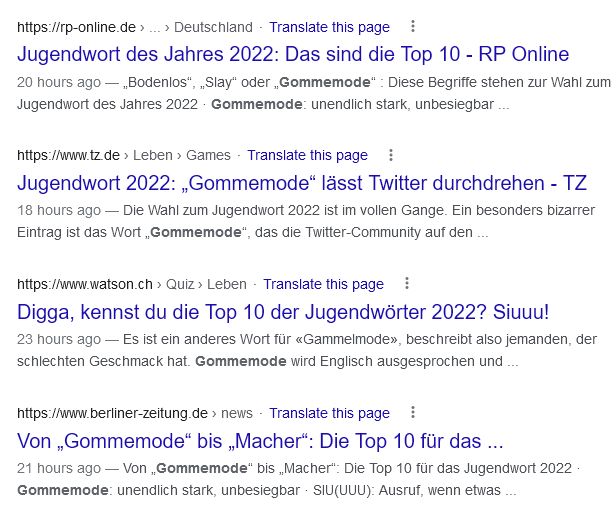 Es sei denn, man befragt Schweizer. Dortzulande ist Gommemode negativ konnotiert und bedeutet “Gammelmode”. (2. Definition von unten.)
