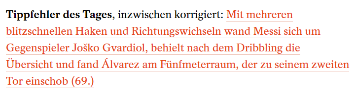 Die Herrschaften von Spiegel Online protzen fast täglich mit dem einen Tippfehler, den sie gefunden und ausgebessert haben. Meistens sind die nichts rechtes und ich finde häufig schönere, aber der hier war wirklich hübsch: