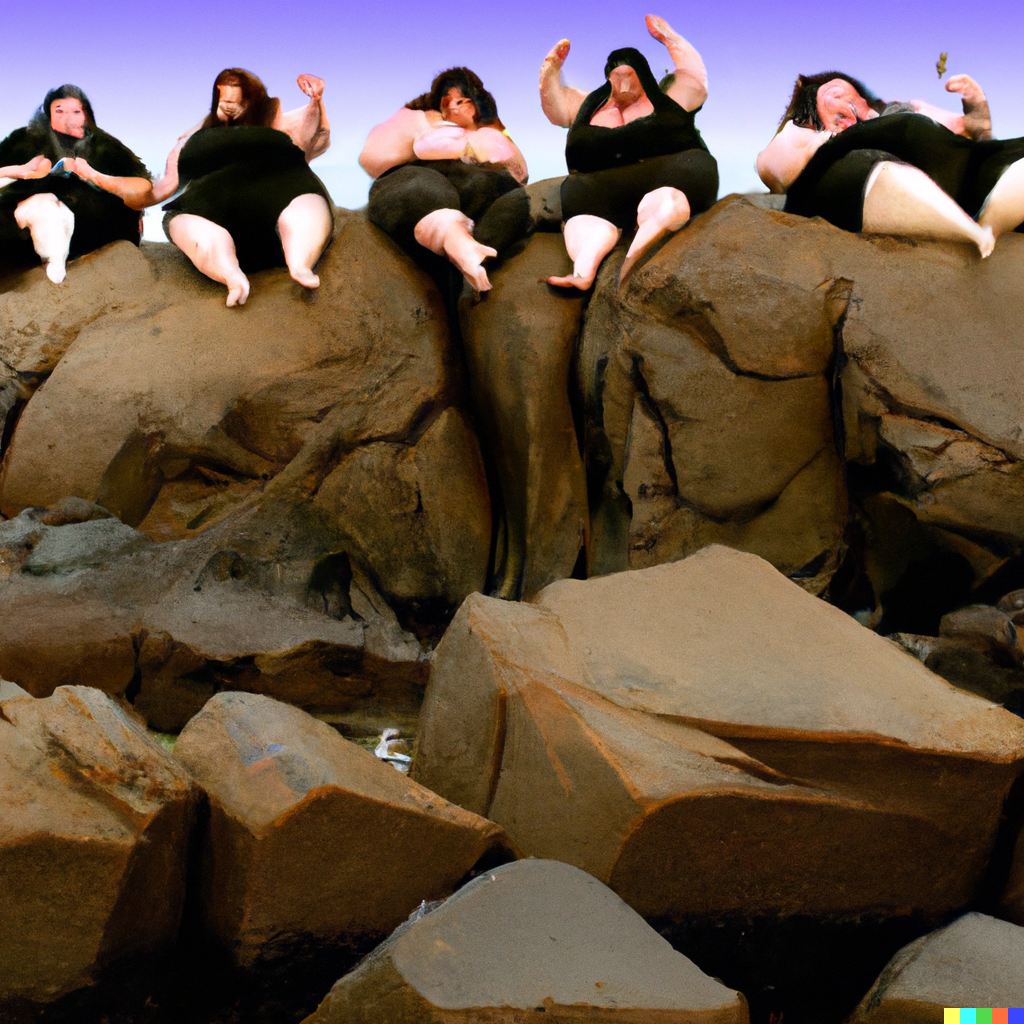 Dieses Quintett war unsere (DALL-Es und meine) heutige Bestleistung. Wobei er an den Gesichtern schon noch ein wenig arbeiten darf.