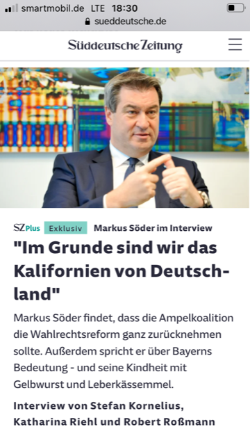 Ich lese die Überschrift und in mir beginnt sofort ein blogpost zu reifen. Darüber, dass ich hier wie dort lange gelebt und ein Heimatgefühl empfunden habe sowie Heimat im allgemeinen und im besonderen und ob der Begriff pluralfähig ist und wie die Mehrzahl dann heißen könnte. Heimätter? Heimatten? Heimats? Ganz anders? Über die (vermeintliche) Sonderstellung unter den Bundesstaaten. Über Politdarsteller an der Macht, den hiesigen GRÖMAZ und den steirischen Bodybuilder am Pazifik. Über die wunderbare Landschaft, zwischen Bergen und Küsten (gut, das muss man in Bayern etwas weiter fasssen und die Adria einschließen). Wäre bestimmt schön geworden. Und was passiert dann? Irgendjemand ändert, Überschrift und Teaser (nicht den Inhalt). Warum nur? Ich hätte zu gerne Mäuschen gespielt in der SZ-Redaktion…