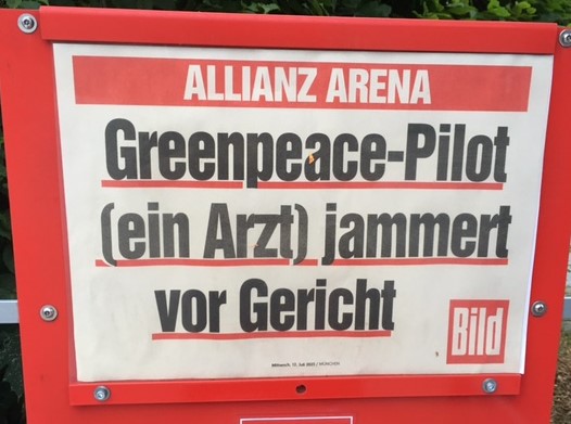 Lass mal zählen: Greenpeace, quasi die Urahnen der Klimakleber. Pilot, hah! Wer sich so ein Hobby leisten kann, der muss doch mindestens Arzt sein. Eben. Hat auf unsere Kosten studiert und nun stört er das einfache Volk beim Fußballgucken (Allianz-Arena). Aber Rumjammern. Weichei.