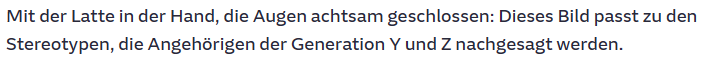 Die oben zitierte Bildunterschrift verwendet die Süddeutsche heute auf ihrer Titelseite, um in der Sparte “Psychologie” die Frage “Boomer oder Millennial?” zu diskutieren.