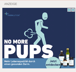 Ich habe nichts geht Anglizismen, wenn sie denn sinnig sind. Aber diese pseudomoderne arg verklemmte Anzeige da unten, die ärgert mich. Was, frage ich mich, wäre verkehrt an der Formulierung “Nie mehr furzen”? Oder meinetwegen “Furz ade!” oder so? Hmmm?