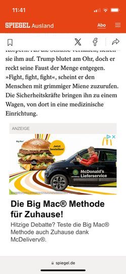 In diesem ersten Teil der Artikels wird über den Hergang berichtet, und wie sich Secret Service-Agenten über 45 werfen, um ihn abzuschirmen. Dazu ein BigMac?