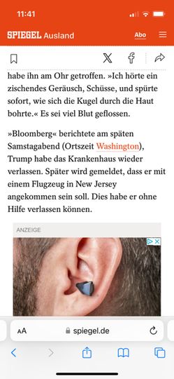 2. Teil, nochmal die Schüsse. Ein blutendes Ohr. Superpassendes Bild. (Aus einer Werbung für Hörgeräte.)
