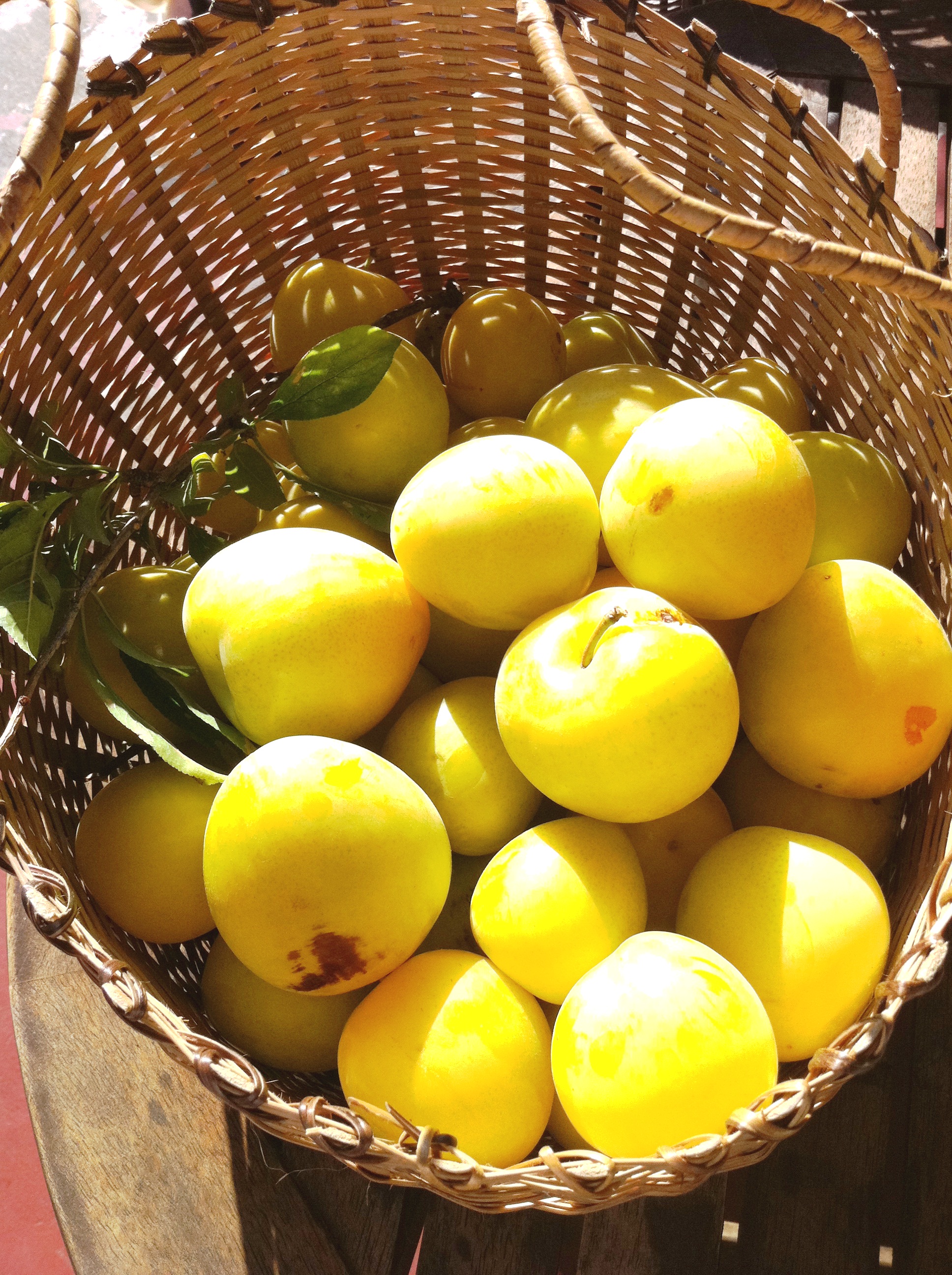 Mein Reineclaudenbaum ist scheint’s der Typ “Bigger-Better-Faster-More”; so riesige Früchte hat er auf jeden Fall noch nie gehabt. Ich sollte ihm sagen, dass das nun reicht; nicht, dass er nächstes Jahr bei jedem Windstoß mit gelben Pflaumen in Melonengröße schießt.