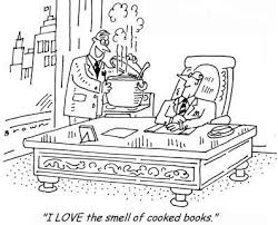 Lektion: “To cook the books” hat mit Essen gar nichts zu tun, sondern mit kreativer Buchhaltung und das Bild (links) ist Herrn M. aus K. gewidmet.