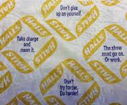 Bonustrack: Hustenbonbons heißen hier Halls wie Halsweh und begleiten den Genesungsprozeß mit aufmunternden Botschaften auf dem Einwickelpapier (rechts).