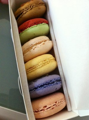 Nachmittags haben sie nämlich statt der sonst üblichen Torte zwei Dutzend frischer knatschbunter Makronen besorgt und die gabs wieder mit einem Ständchen. Hab’ ich einen Dusel: So nette Nerds aber auch.
