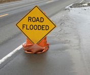 Wir haben gestern morgen im Stau (es ging nur ganz langsam vorwärts, weil sich die Straße in ein Flüßchen verwandelt hatte) einem armen Kerl vom Straßenbauamt dabei zugesehen, wie er mit einer Stange in einem Blätterhaufen herumstakend vergebens versucht hat, den darunter liegenden Ablauf irgendwie freizukriegen – und schließlich resigniert zur zweitbesten Lösung griff und einfach ein “Flooded”-Schild aufstellte.