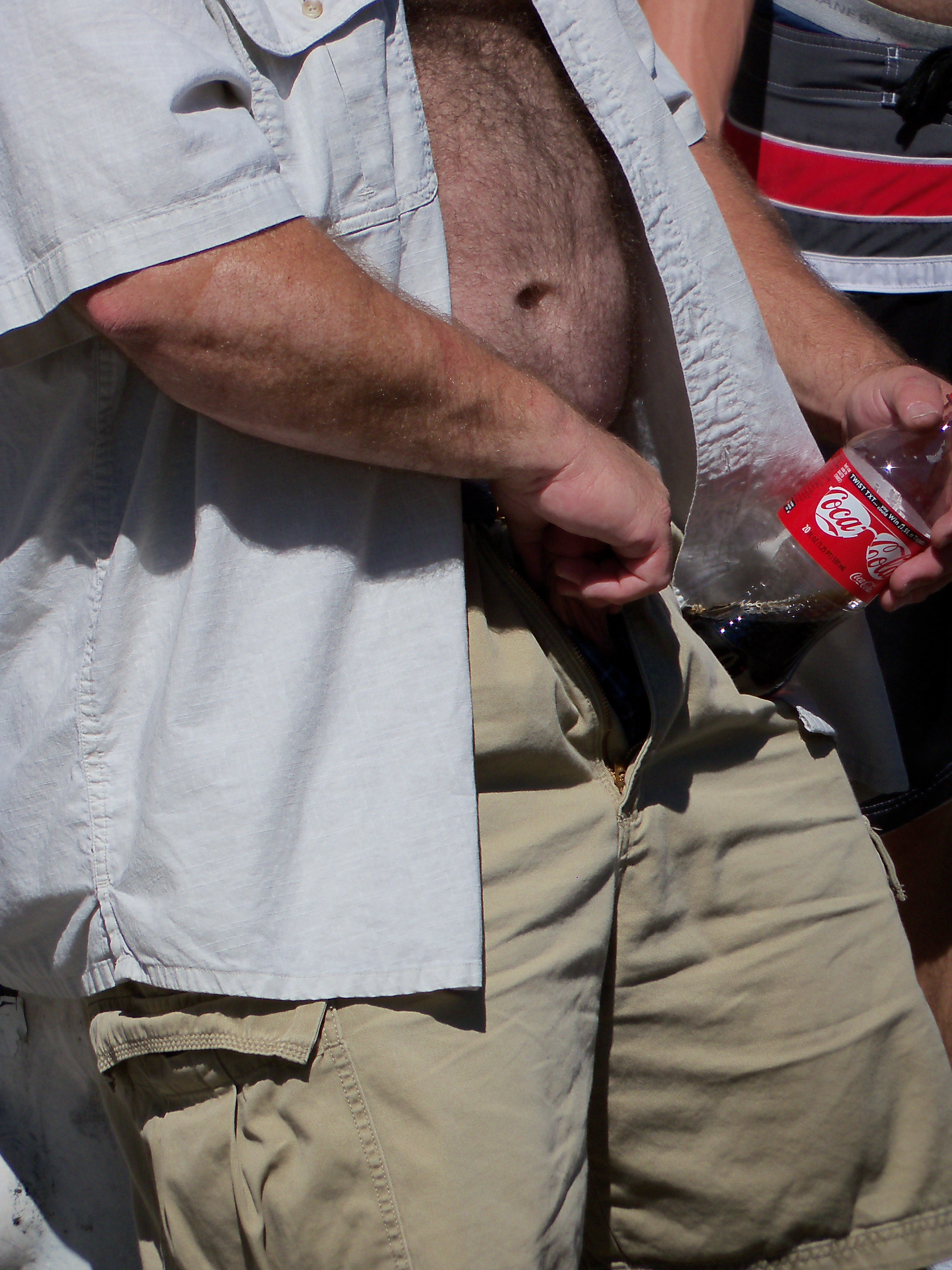 Nein, stimmt nicht, nicht alle. Aber ich habe noch nie so viele Männer gesehen, die sich öffentlich einen runtergeholt haben und mit den Früchten ihrer Arbeit wahllos die Menge besprengten, im wesentlichen von dieser ignoriert. Bis auf einmal, wo ein Passant sich bei einem schweißüberströmten, hochroten und keuchenden Herrn angelegentlich erkundigte “Can I lend you a hand?”